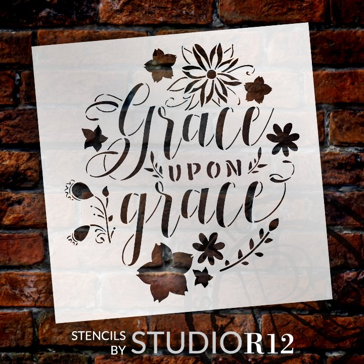 Grace Upon Grace Stencil With Flowers By Studior12 Diy Inspirational Faith Quote Home Decor Craft Paint Wood Signs Select Size 12 X 12 Inch Walmart Com